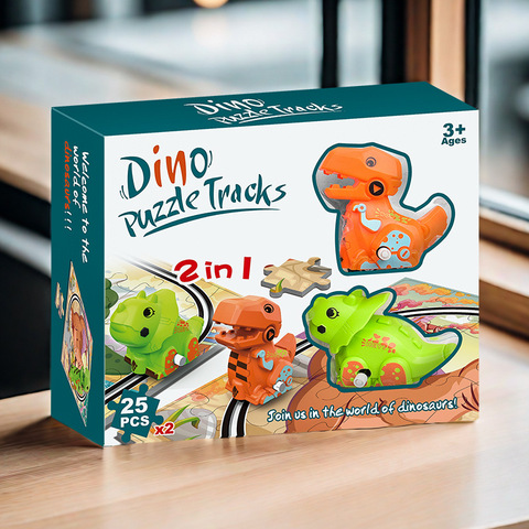 2-in-1 DIY恐竜シーンビルディングパズルトラック車のおもちゃ子供用プラスチッククロスボーダーギフト